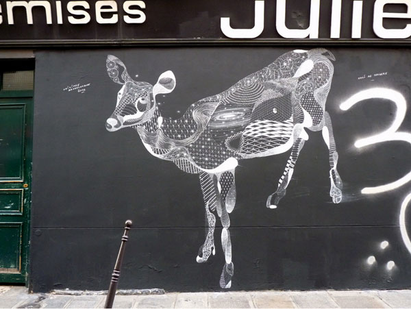 Among the bevy of street artists who use wheat paste or spray paint, every once in a while someone like Philippe Baudelocque comes along and surprises us all with simple chalk drawings. Simple chalk only referring to the materials, but the skill with which he renders dimensional portraits of animals is fascinating and non-toxic. Lots of philosophy and honesty built into the work and hopefully Baudelocque can continue to take his style world wide, even if it washes away in an instant. Complex designs and patterns galore!
